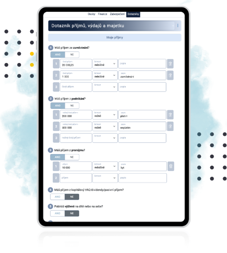 | Dotazník příjmů a výdajů | |