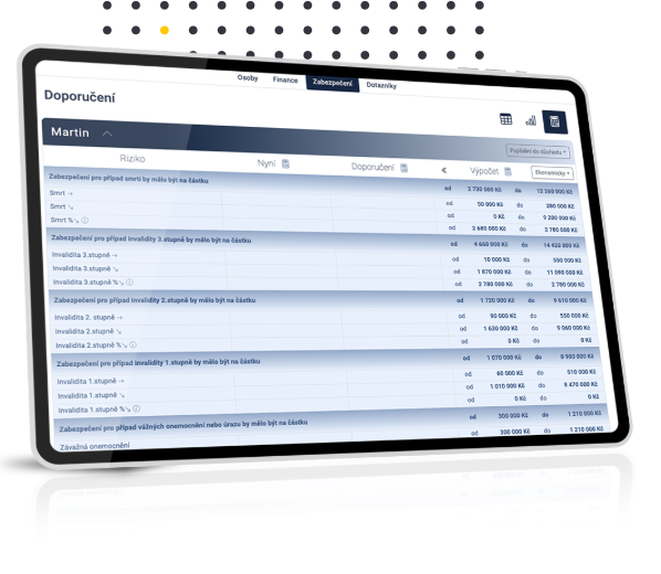 Modelace životních situací, jasně ukáží výši pojistného a dostatečné krytí